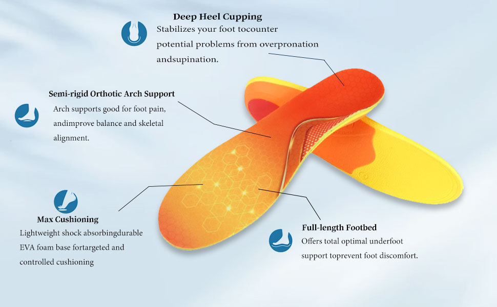 1. Supporto dell'arco plantare, si adatta alla forma del piede, allevia il disagio dell'arco metatarsale e del tallone