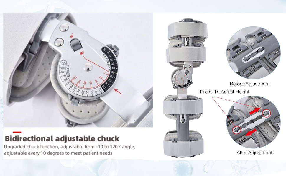 Caratteristiche del prodotto: 1. Il materiale in lega di alluminio riduce il peso dei supporti e garantisce un utilizzo confortevole. Lega di alluminio regolabile aggiornata, la lunghezza della staffa regolabile può essere regolata in base all'altezza del paziente. 2. Funzione mandrino migliorata, regolabile da -10 a 120° di angolo, regolabile ogni 10 gradi per soddisfare le esigenze del paziente 3. Fodera antiscivolo e traspirante, morbida e traspirante senza soffocamento, comoda da indossare Un'applicazione: 1. Riabilitazione postoperatoria del ginocchio 2. I legamenti mediale e laterale e i legamenti crociati anteriore e posteriore vengono utilizzati dopo un infortunio o dopo un intervento chirurgico 3. Immobilizzazione o limitazione dell'attività dopo intervento chirurgico al menisco 4. Allentamento dell'articolazione del ginocchio, artrite o intervento chirurgico per frattura 5. Si utilizza in posizione fissa dopo la rimozione precoce del gesso 6. Trattamento conservativo funzionale della lesione del legamento collaterale 7. fratture di stabilità 8. Fissazione della lassità legamentosa grave o complessa